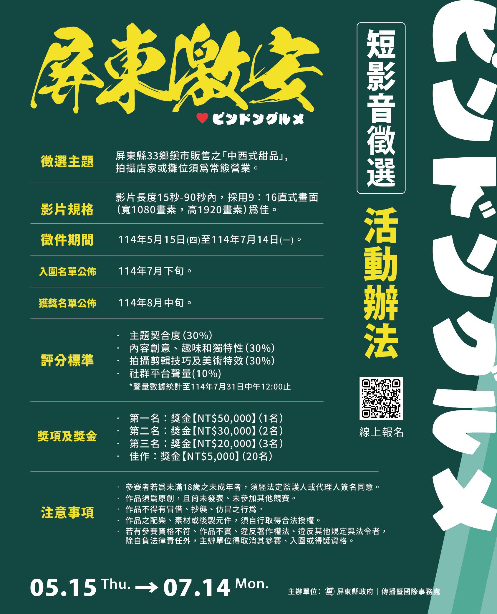 【屏東激安】美食短影音徵選競賽相關資訊,請至報名網站查詢:https://pse.is/7kjex9