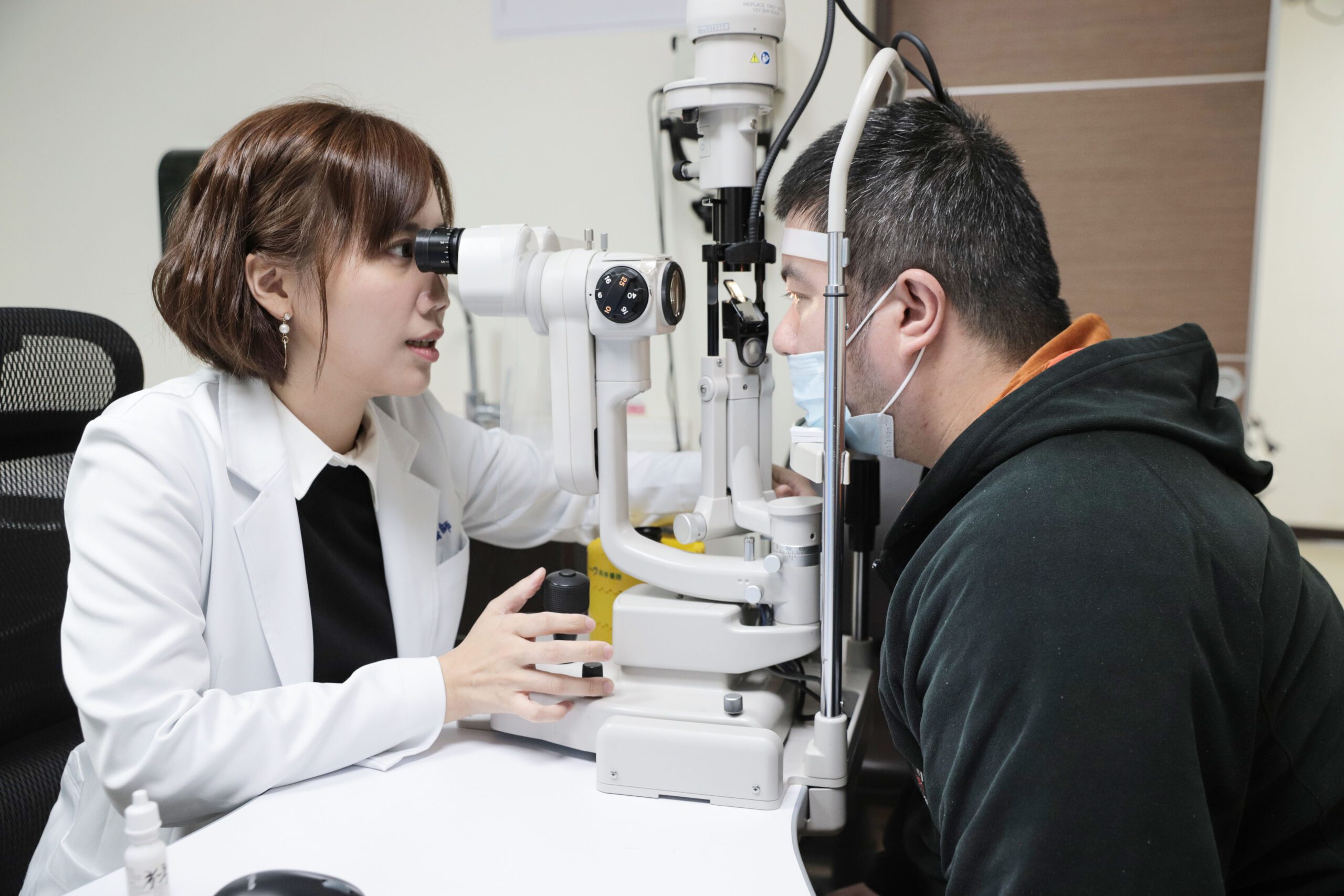 ▲羅東博愛醫院眼科汪玟儀醫師檢查白內障病患。(圖/羅東博愛醫院提供)