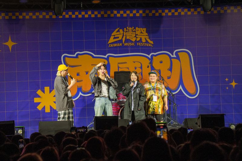 台灣祭五週年行前派對現場人潮洶湧,將大灣遊憩區周邊擠得水泄不通,玖壹壹一如既往的熱力四射表演,就在高爾宣深情演出中,周春米縣長悄悄地帶著育兒包驚喜現身舞台,恭喜高爾宣榮升為新手爸爸,祝福他邁向人生新階段,這一刻的溫馨和驚喜,也讓整場演出更添感動與溫度。