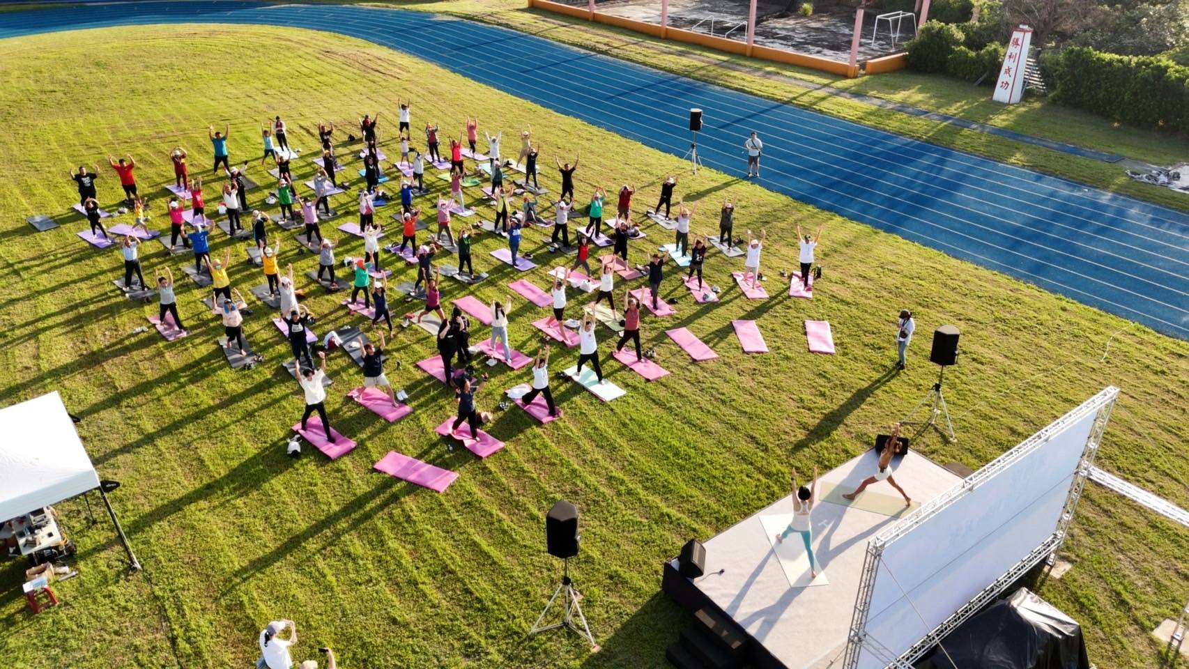 2025自然醒慢活祭「東海岸長濱liao天室」首場「百人晨曦瑜珈」,24日在長濱國中操場舉辦,臺東縣副縣長王志輝、國家發展委員會等長官出席,與百位民眾在晨光中,展開融合自然與靜心的瑜珈體驗。