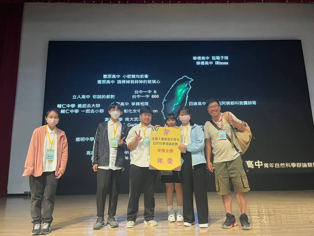第十屆全國大專暨高中青年自然科學辯論競賽」於上月24、25日在屏東大學登場,全國36所高中及大專院校106件作品參賽,青年菁英齊聚一堂,展現科學探究與思辨實力,競賽相當嚴謹,參賽者挑選問題後,經由長時間的文獻探討、實驗、研究到上場競賽,需要相當深入的投入,高中組共28支隊伍參加,能脫穎而出,相當難得。