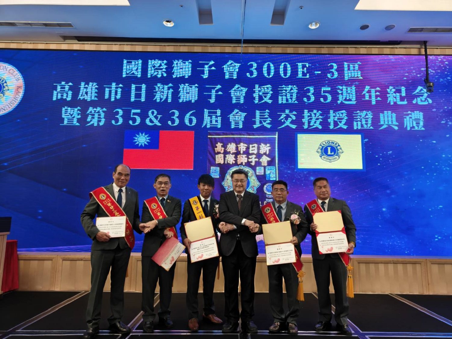 日新獅子會創立於1990年,隸屬國際獅子會300-E3區,至今已邁入第36屆,一路以「知行合一、服務社會」為宗旨,長年投入教育扶助、弱勢照護與公益推動。當晚活動氣氛溫馨隆重,獅友們齊聚一堂,300-E3區總監黃明祿與多位區幹部均親臨見證,場面既感性又莊重。