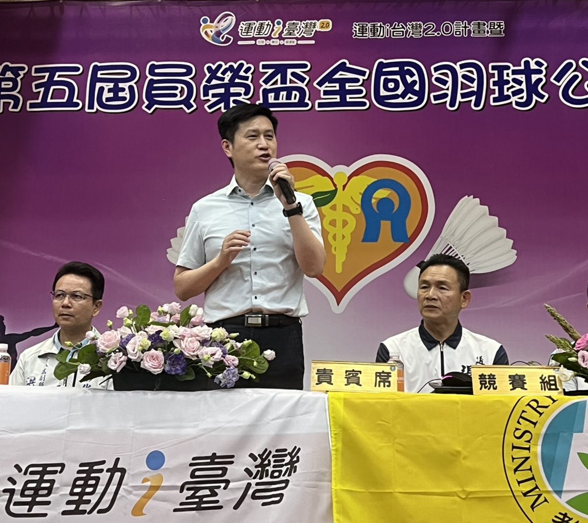 吳主委指出,感謝員榮醫療體系大力支持,鼓勵羽球運動,讓在地球員有個極限舞台發展,此外,也感謝體育署、彰化縣教育處及員林市公所支持及地方企業捐款贊助,讓全國各地選手在賽事之餘,能更加認識員林市。