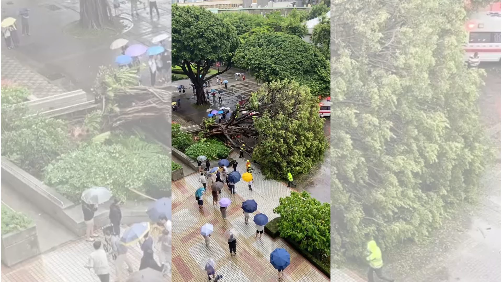 台中市逢甲大學今下午5點多驚傳樹木倒塌壓到多名學生的意外,其中4人受傷,有1人當場失去呼吸心跳命危,台中市消防局緊急將傷者送醫搶救,全案發生原因尚待調查。