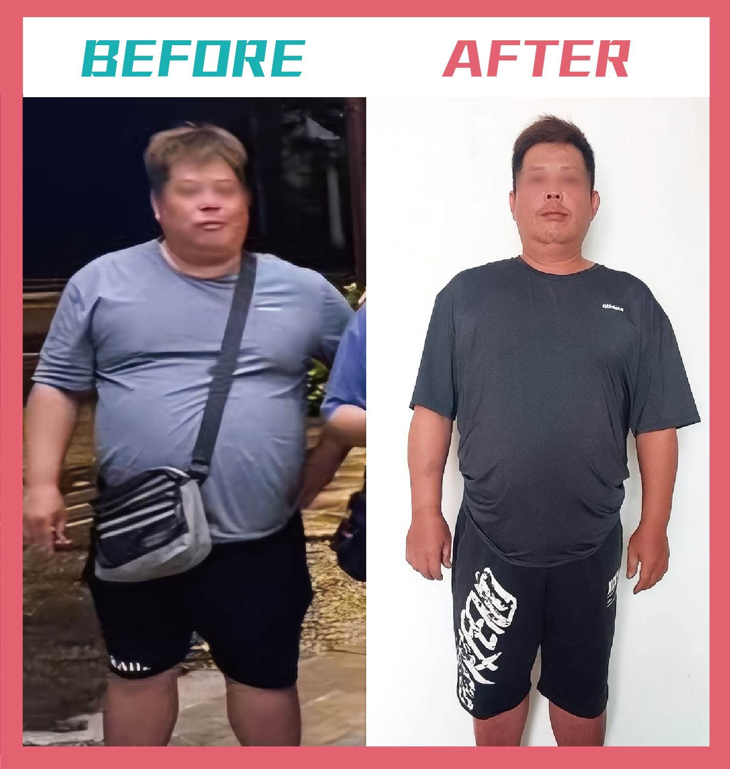 邱旭緯規劃內科用藥,以一個月至少減4公斤的速度減重,7個月內瘦下34公斤。量測數據也發現,體脂率下降了 15.2%,糖化血色素也從 9.5% 降至 5.8%,血糖控制顯著改善,血脂肪數值下降,肝功能數值也回歸正常。林先生表示,自己精神狀況的改善最為有感,晚上的睡眠品質有好很多,開車和工作比較有精神,不會突然睡著,身體狀況和精神狀況都有變好。