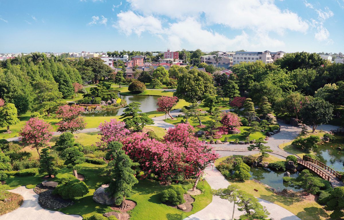 此時正值園區百日紅(紫薇)花季,粉紅花朵沿園林步道與古厝庭院盛放,為場域更添詩意與拍照亮點。花影隨風搖曳,與古董車的優雅線條交織出一幅仲夏限定的復古畫面,為民眾留下絕美回憶。
