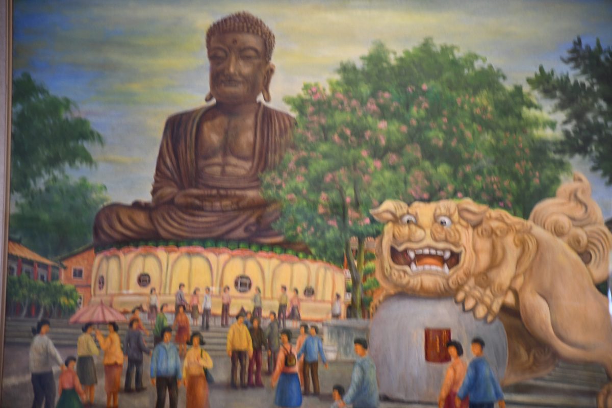 ▲林俊寅老師畫八卦山大佛。(圖/記者蕭麗鳳攝)
