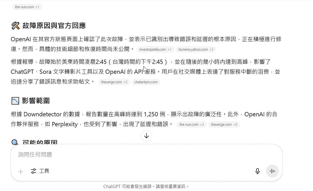 影音/ChatGPT全球大當機 OpenAI目前正在調查與修復中
