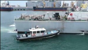 1630 時於高雄港 16 號與 17 號碼頭辦理艦船展示及開放參觀活動,邀請民眾近距離體驗海巡任務量能,其中 16 號碼頭開放 4000 噸級巡防艦「雲林艦」供民眾登艦參觀,並於其飛行甲板展示空勤總隊 AS-365 海豚直升機,呈現艦機整合運作實況,有效提升國人對海巡多元任務的認識,也深化全民瞭解海巡署為落實「國安、治安、平安」三安的關鍵力量。