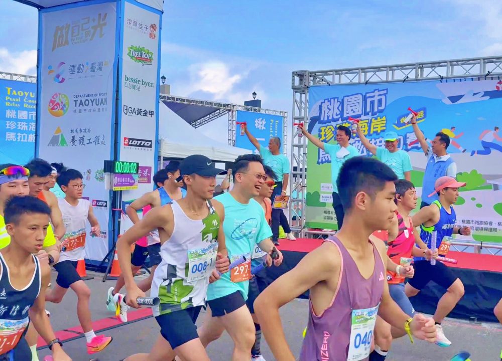 桃園市副市長蘇俊賓今(8日)出席「2025桃園市珍珠海岸馬拉松接力賽」,並參與第一棒賽程,與跑者一同起跑、領跑全場,展現對全民運動的重視與支持。此次活動為首屆舉辦,吸引來自全國超過300支隊伍、逾1,200名跑者熱情參與,現場氣氛熱烈,充分展現桃園濱海地區的運動活力與觀光魅力。