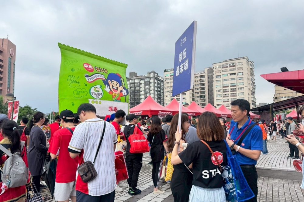 平常氣勢十足的球場,今天搖身一變成為奶茶控與甜點控的天堂——從看台、球員、啦啦隊球衣到氣球拍貼機,全場夢幻氛圍滿點,球迷一走進來立刻變身攝影魂爆發的「少女系球場探險家」!味全龍還推出超夯限量好禮「奶茶馬卡龍零錢包」,開場前球場外早已大排長龍,不少球迷粉絲特地提早就來排隊,為的就是搶先收藏這款甜蜜系贈品!