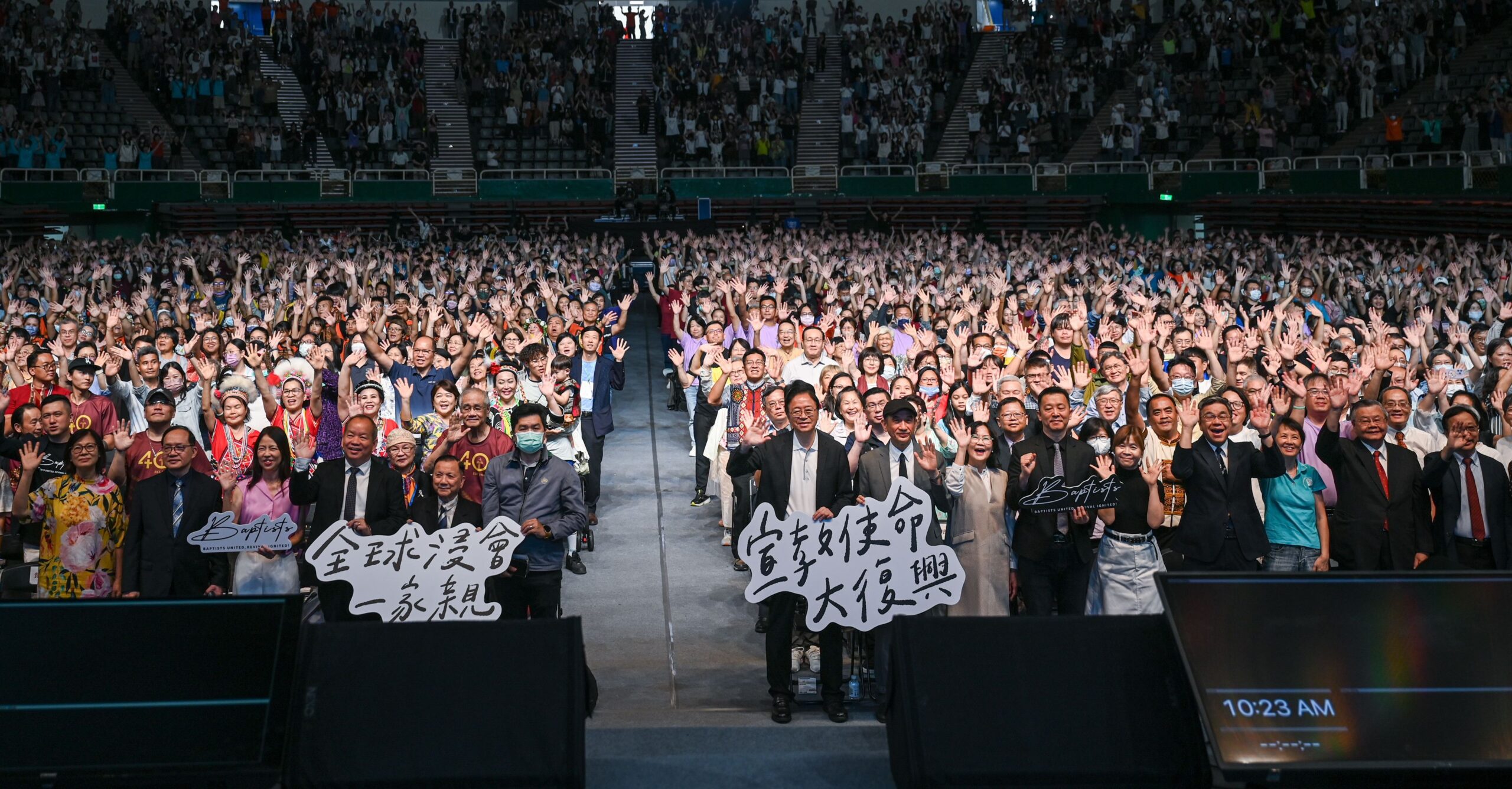 桃園市長張善政(1)日上午前往龜山區,出席第二屆「GREAT REVIVAL 全球浸信會萬人主日聯合崇拜」時表示,很榮幸參與此次盛會,除祈願與會者及桃園市民平安健康外,也希望各國領導人有足夠智慧與善意定紛止爭,消除戰爭與貧窮,推動世界和平與普世福祉。