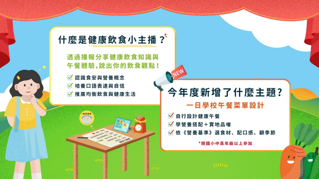國教署表示,學校午餐不僅是每日營養攝取的重要來源,更是實踐飲食教育的關鍵場域。透過「健康飲食小主播」競賽,期望讓學生在創作與學習過程中深化對飲食教育的理解,將健康飲食觀念內化為生活習慣,為飲食教育扎下穩固根基。