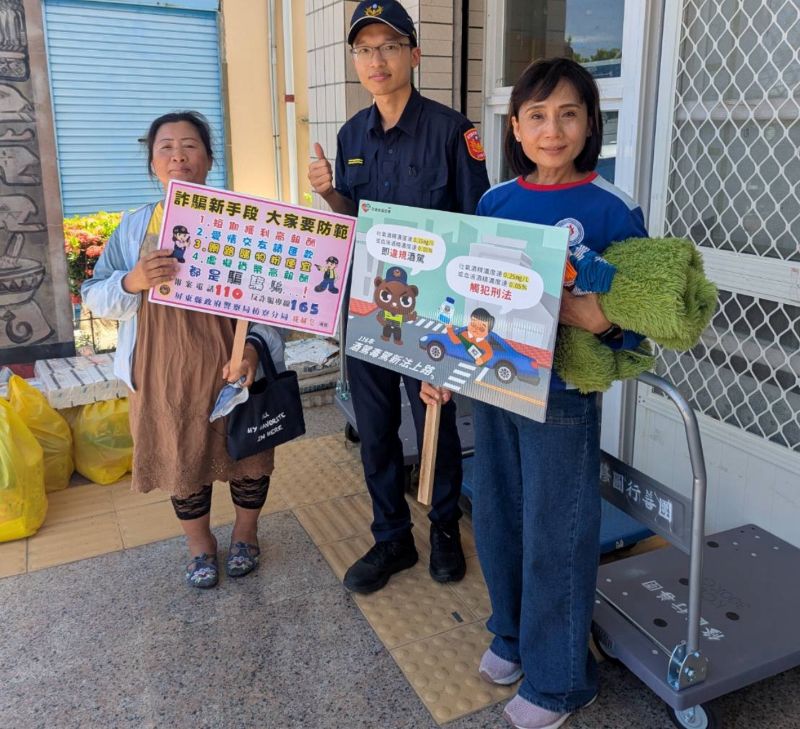 員警發放物資時,同步實施反詐騙及交通安全宣導,使各位鄉親了解常見詐騙手法「短期獲利高報酬」、「假檢警」「愛情交友匯款」等;也提醒大家「路口停讓」、「禮讓行人」「拒絕酒駕」等重要交通安全觀念,以減少交通事故發生。