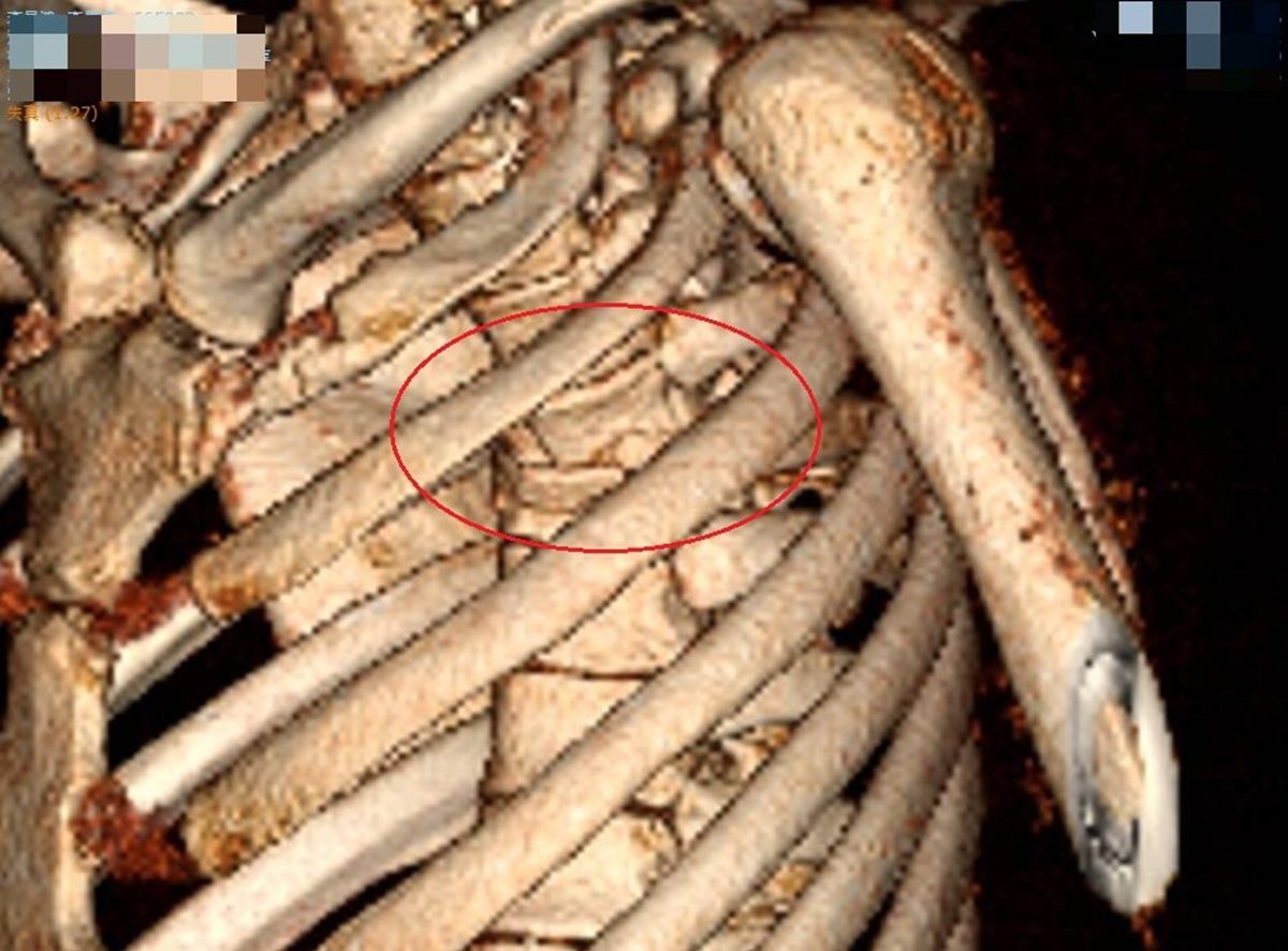 神經外科醫師張昕煥說,李先生胸部嚴重撞擊,屬於脊椎骨的胸椎第4節爆裂性骨折,壓迫到神經,雙腳無知覺,有癱瘓之虞,因此馬上手術,進行長達8小時的椎弓切除及神經減壓手術,並以10支鋼釘固定,手術順利,但李先生右腳還是不會動,肌力值0分,左腳稍微能動,肌力值2分,還是有下肢偏癱的可能。