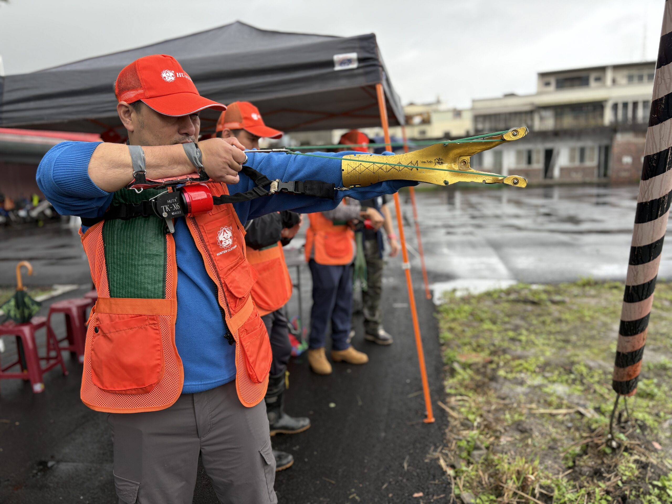 林業及自然保育署宜蘭分署5日委託射擊訓練專業團隊在宜蘭分署宜蘭工作站,辦理動物驅離槍暨綠鬣蜥防治訓練課程。訓練內容包含彈弓、魚鏢操作、高壓打氣機操作維修保養、低動能槍械(動物驅離槍)實彈射擊、數位虛擬實境移除射擊,期能達到驅離或移除目標物種,維護原生態的平衡。