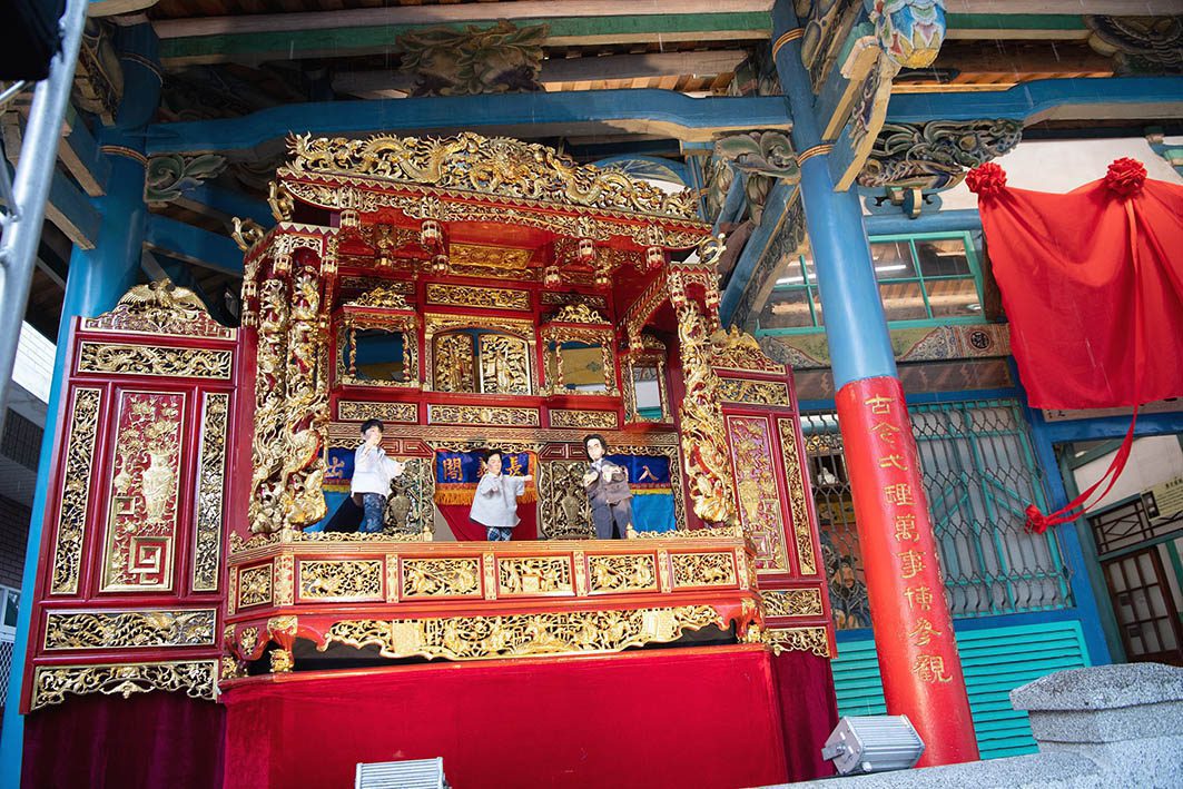 ▲文化局特地邀請嘉義市無形文化資產保存團體「長義閣掌中劇團」,原地復刻當年在戲臺上演布袋戲場景。(圖/嘉義市政府提供)