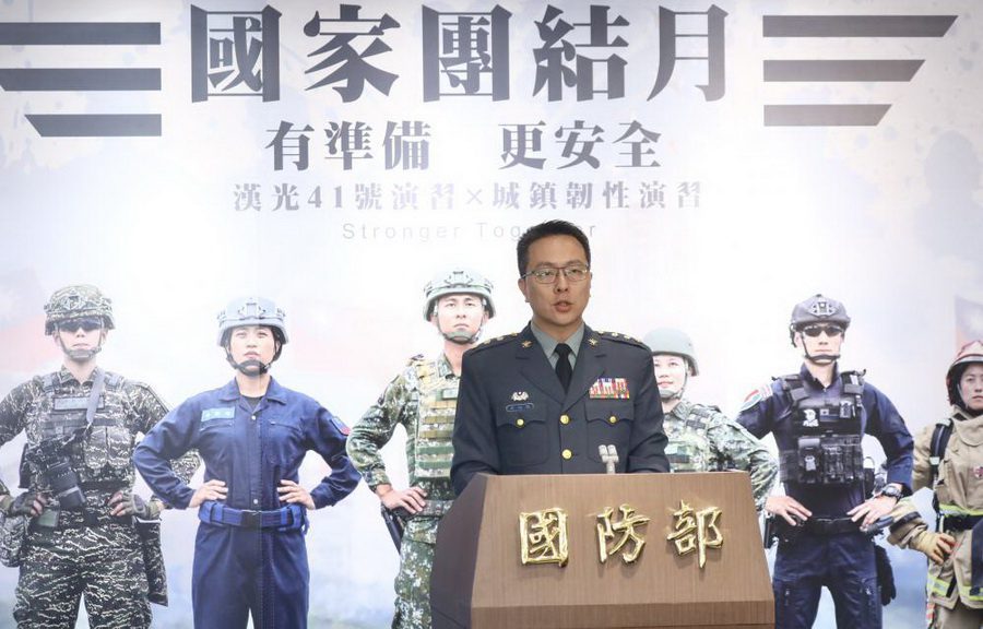 國防部舉行例行記者會,說明「國軍漢光41號演習實兵演練」、「2025城鎮韌性(防空)演習」及「警政服務APP防空避難」規劃。