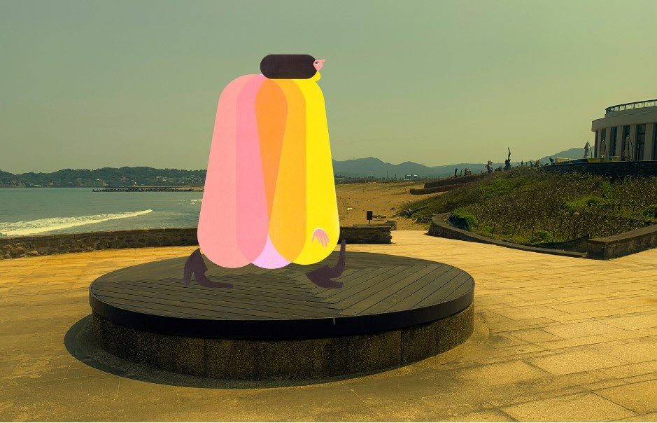 ▲來自美國紐約當代藝術家Amber Vittoria授權首次將其色彩強烈又充滿抽象的擬人畫風作品,作品名稱《潮身.曦步 Walks in Light》來台化為立體作品展出,圖為模擬圖。(圖/新北市景觀處 提供)