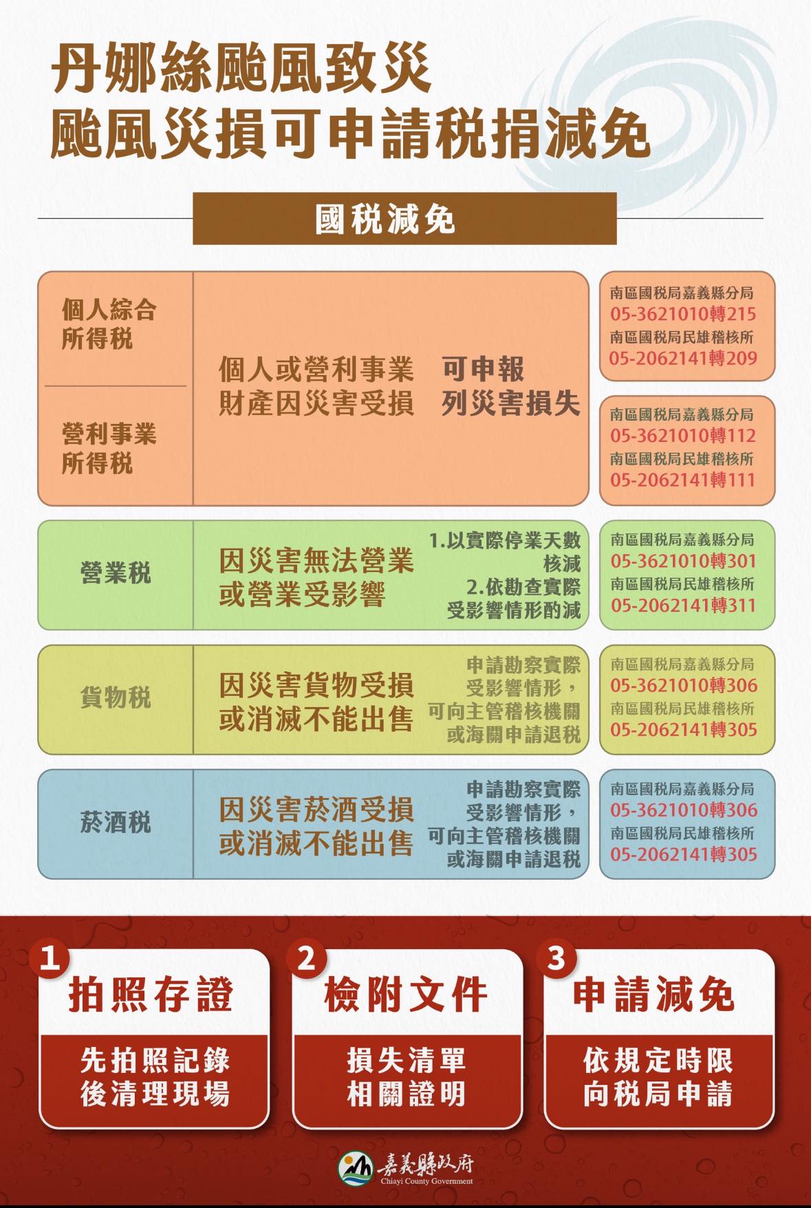 ▲風災可申請國稅減免項目。(圖/嘉義縣政府提供)