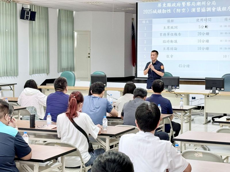 為提升公私部門面對緊急災害之應變能力,屏東縣「2025年城鎮韌性演習」將於7月16日(星期三)下午1時30分至2時舉行,由潮州分局長林俊雄於3日親自主持協調各相關單位辦理模擬疏散、警報發布及交通管制等項目。