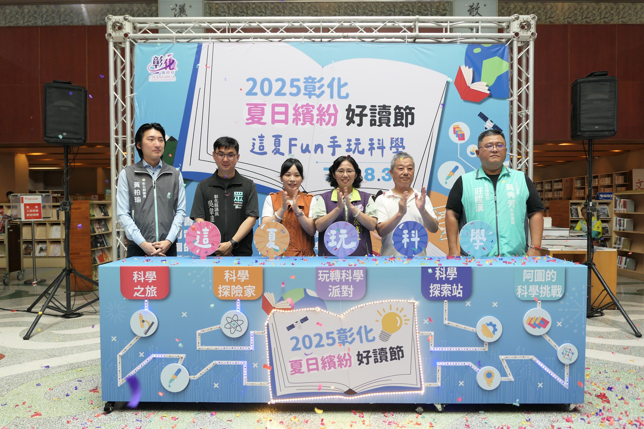 為鼓勵學子在暑假期間善用圖書館資源、快樂學習探索,彰化縣文化局舉辦「2025彰化夏日繽紛好讀節」,今(7/1)日上午在縣立圖書館舉行活動宣傳記者會,以「科學」為主軸,精心規劃6大主題系列,共推出19場精彩活動,自即日起至8月31日在縣立圖書館及全縣各鄉鎮市立圖書館熱鬧展開。今日記者會由文化局長張雀芬代表縣長王惠美與會,期盼透過動手實作、親子共學的方式,讓孩子們在圖書館中玩出好奇、學出創意,不只學知識,更能培養觀察力與解決問題的能力,度過充實而有意義的暑假。