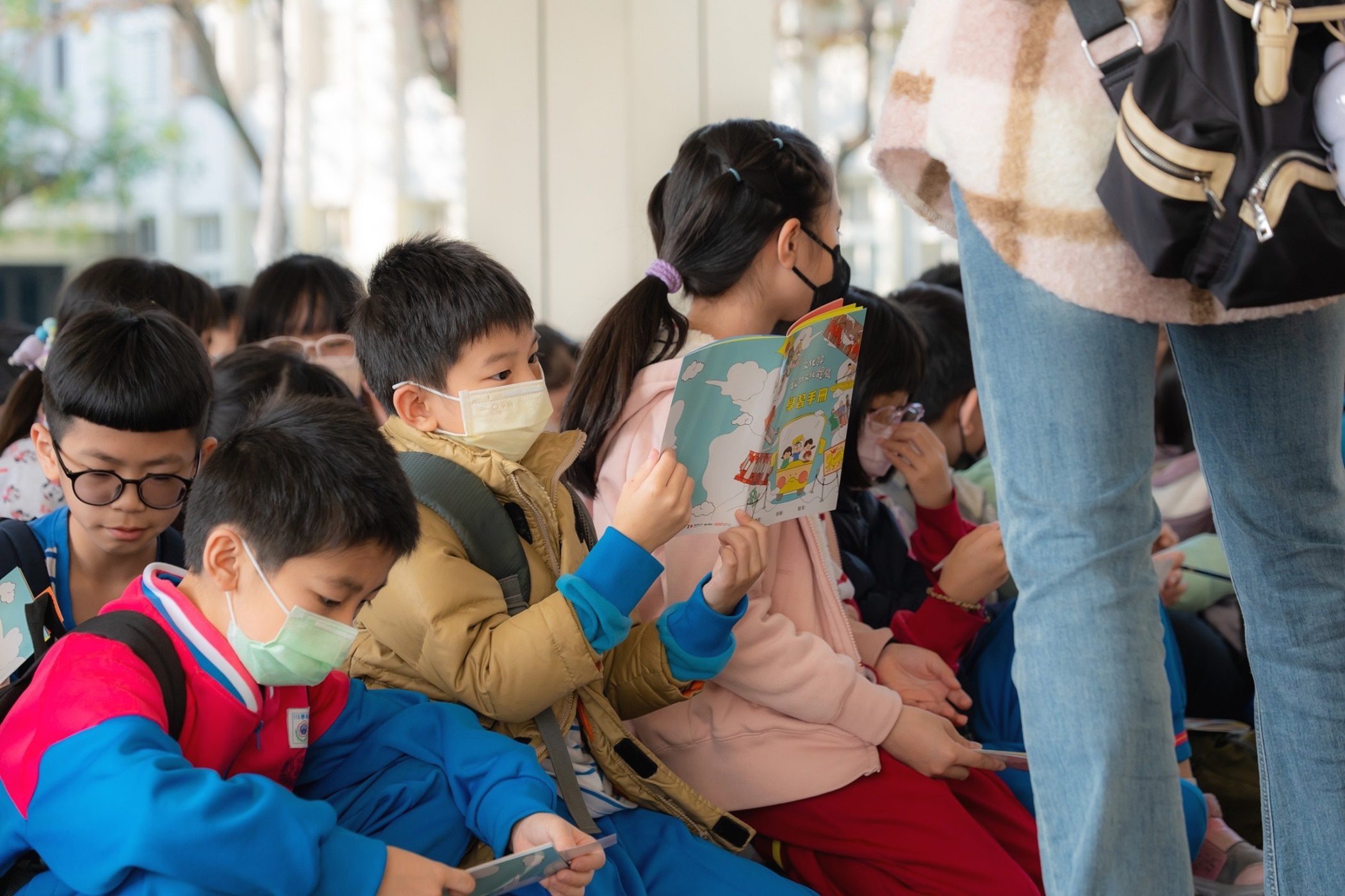▲孩子個個認真翻閱手中校外體驗手冊,對於行程內容相當期待。(圖/嘉義市政府提供)