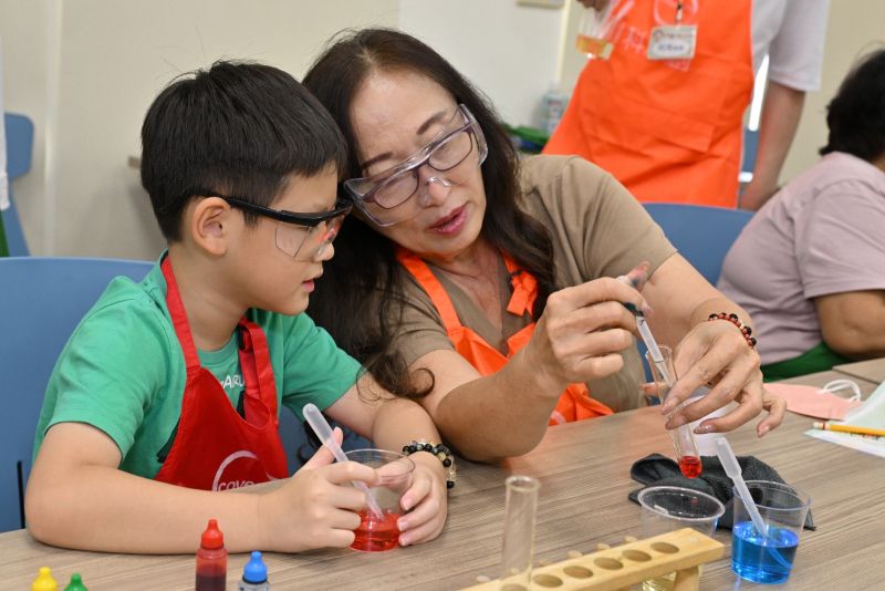 活動吸引了超過90位祖孫熱情報名參加,現場充滿歡笑聲與驚嘆聲,祖孫們一同動手做實驗,共同體驗科學的奇妙與樂趣。活動不僅讓孩子們在歡笑中種下對知識的渴望,也讓長輩們重新找回學習的樂趣,更難得見到跨世代祖孫共學的歡樂場面。
