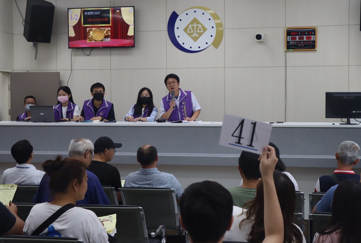 法務部行政執行署彰化分署8月5日上午舉行「卦山法拍」,本場次最吸睛的物件是4萬餘顆泰達幣,分成二標,上午共有55組人馬登記領取號碼牌參與競標,行政執行官朗讀競買須知後,第一標2萬 3000顆經過50次出價,以74萬9000元拍出,第二標2萬 2943.003963顆經過78次熱烈喊價,最終以78萬 6000元落槌拍定,二標合計出價128次,成交價高達153萬5000元。