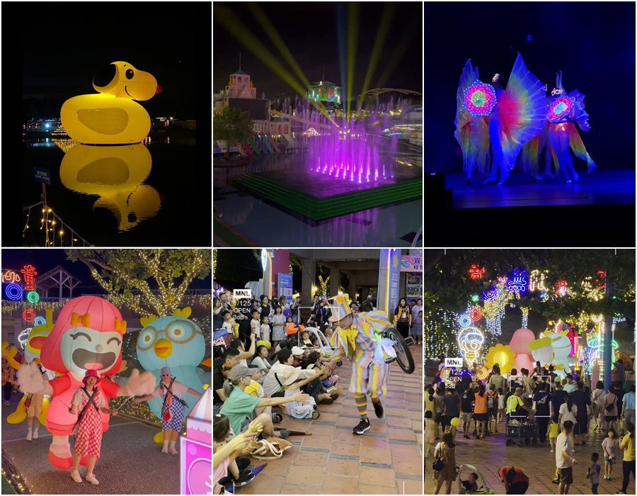 此外,還有洋溢熱鬧與歡樂的遊藝踩街、趣味十足的互動式雜耍、晚上會發光而更顯可愛的史努比鴨,以及音樂、雷射與水柱映襯無間的水舞燈光秀,為夜間的園區散發出陣陣浪漫與炫麗。