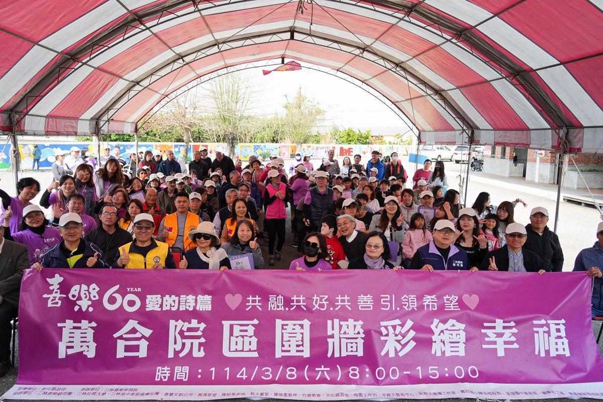 為慶祝喜樂保育院 60 週年,院方特別策劃「喜樂60愛的詩篇—共好、共榮、共善、引領希望」系列活動,8日由「彩繪喜樂」於萬合院區揭開序幕,本次活動邀請二林喜樂顧問團、二林社區大學、善清草堂、聚德書藝會、春豐文創公司、二林高中美術資優社團、溪湖國中美術班及在地藝術創作者等17個協辦單位,共同攜手喜樂保育院師生,齊心彩繪 140 面圍牆,以藝術傳遞溫暖,讓環境充滿色彩與鮮活生命力。