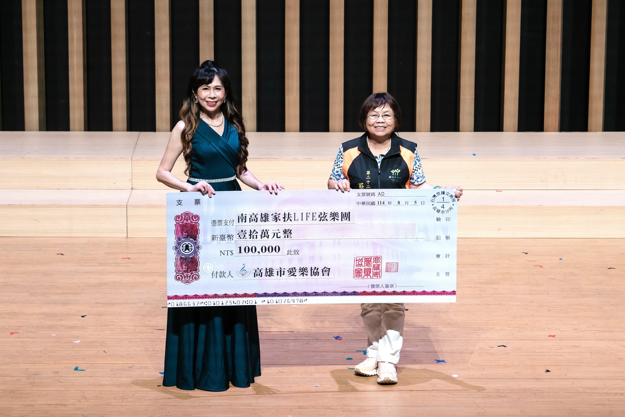 《愛飛舞 樂悠揚》不僅是一場音樂饗宴,更承載著對弱勢學童的深切關懷。本次音樂會盈餘將全數捐助南高雄家扶弦樂團,支持弱勢學生的音樂教育計畫,讓音樂成為孩子們圓夢的翅膀。音樂會在熱烈掌聲與感動氛圍中圓滿落幕,誠摯感謝所有指導老師、演出團隊、蒞臨貴賓與熱心會員的支持與參與。高雄市愛樂協會將持續以音樂為載體,勇於創新、敢於逐夢,攜手共譜更美好的未來樂章。