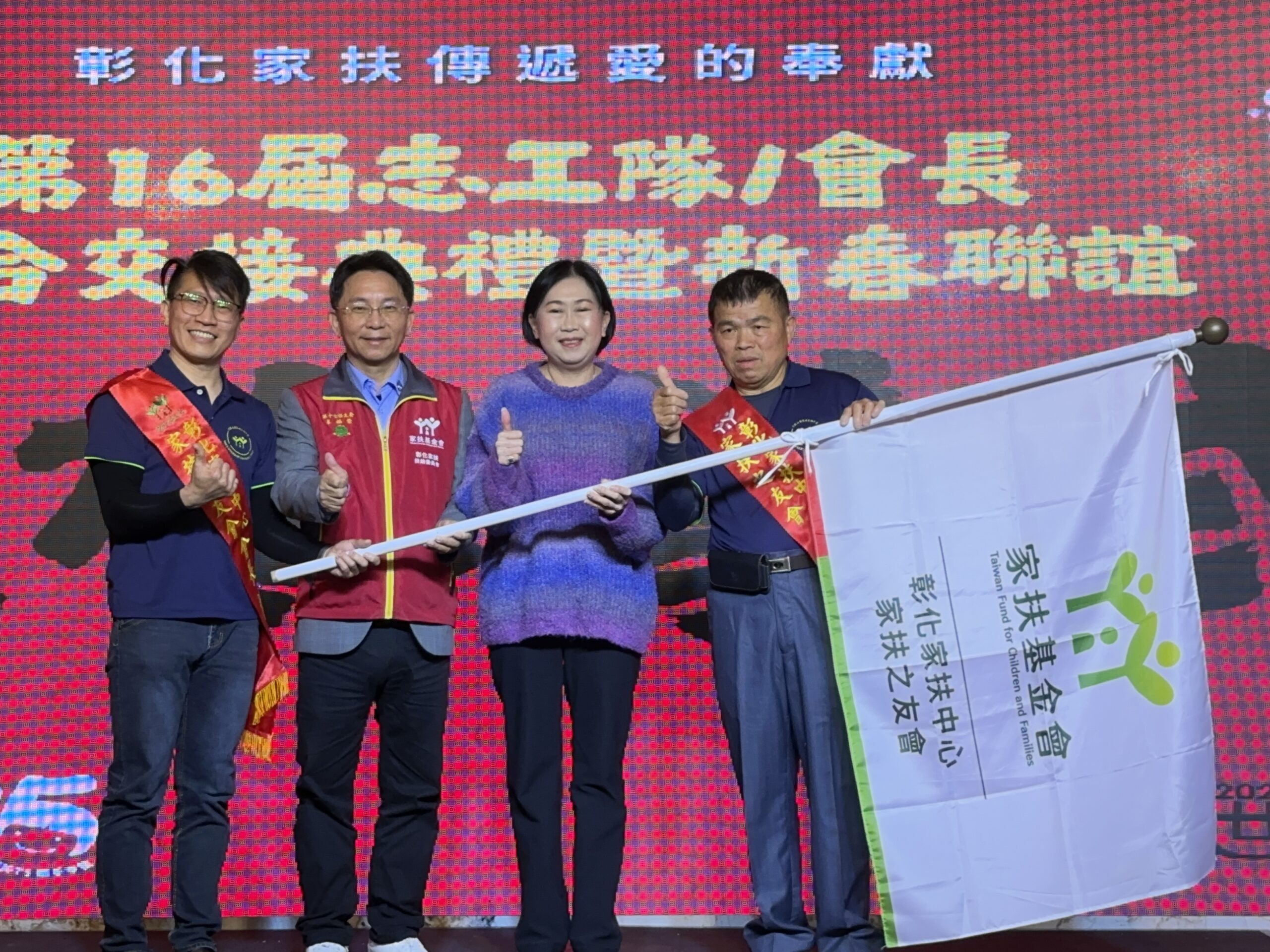 家扶中心辦理新舊任志工隊/會長交接典禮及聯誼,表達對志工一年來的協助及多年來支持中心各項活動的感謝,五支志工隊去年共辦理126場次活動,範圍遍及26鄉鎮市,典禮中新舊任隊會長交接彰顯各隊志工薪火相傳精神,典禮中更表揚各隊優秀志工,讓活動更顯榮耀,每一位認真付出奉獻的精神堪為中心所有志工的表率。