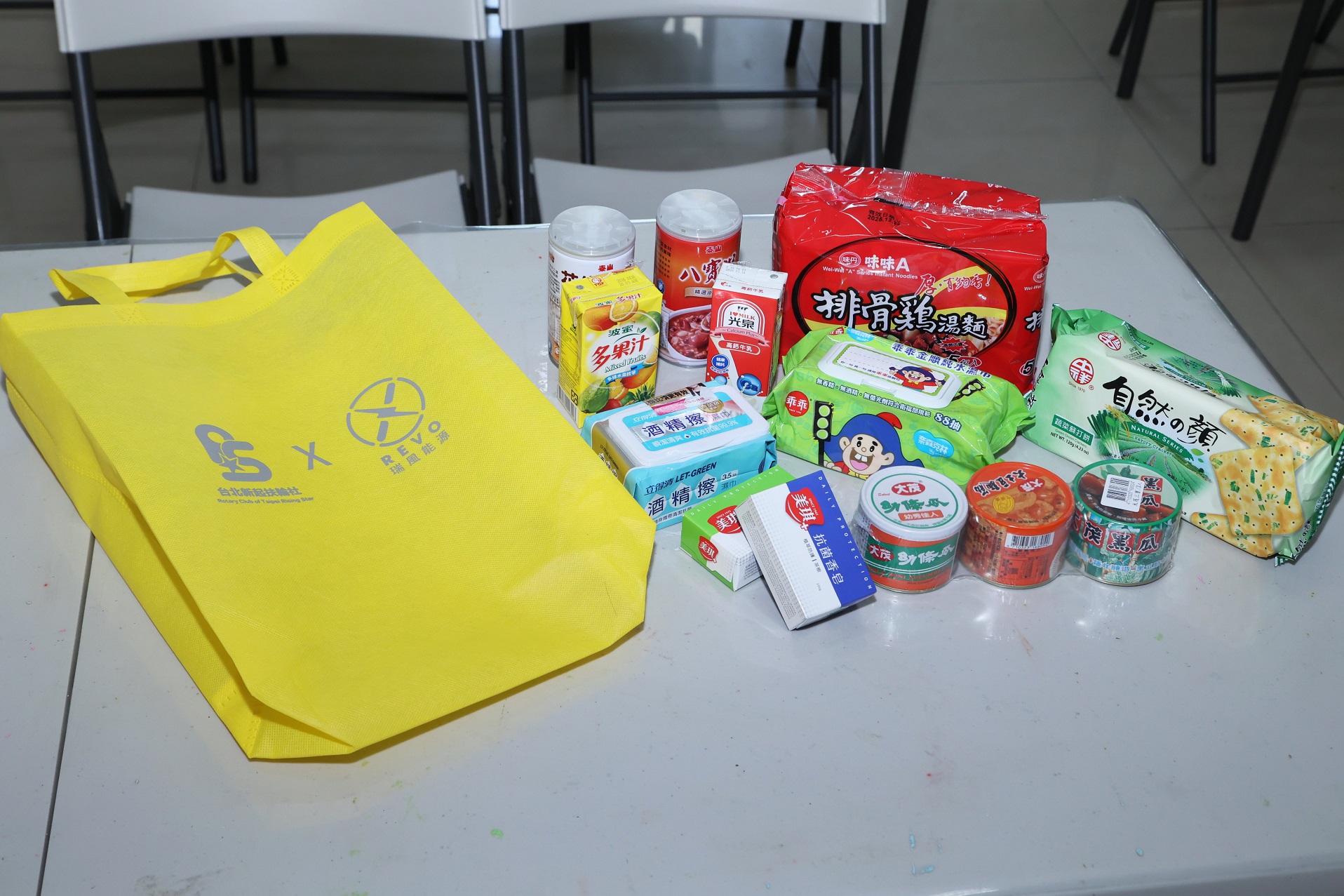 ▲平安關懷包內容包含多種食品及生活用品,替獨居老人和弱勢家庭儲備防災的食糧和生活物資。(圖/新起扶輪社)