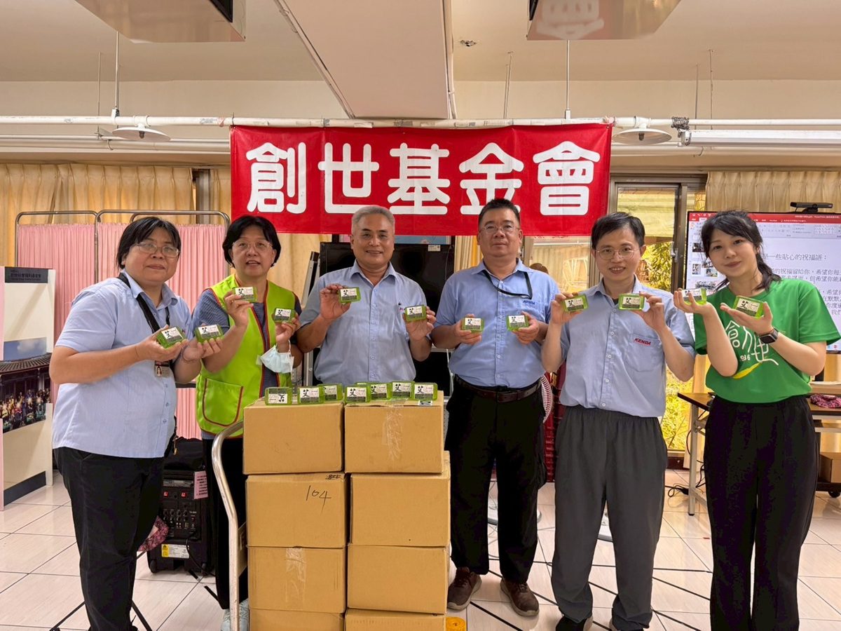 ▲代表建大慈愛社全體同仁捐贈1,000塊天然艾草皂,傳遞企業對生命價值的重視與關懷。(圖/創世基金會提供)