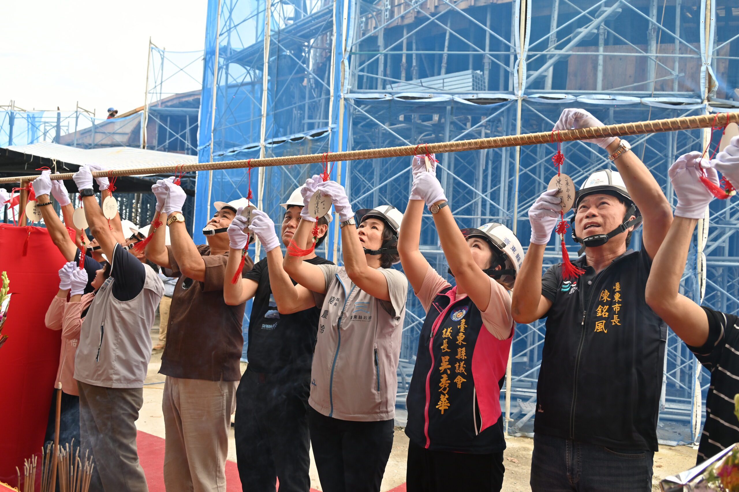 「富岡港交通船客運服務中心」4日舉行上梁典禮,象徵主體結構工程正式完成,工程進度即將邁入新階段,縣長饒慶鈴表示未來遊客將能享有更便捷的登船動線與舒適候船環境,兼顧觀光旅運與傳統漁業的平衡發展,為臺東海港建設的關鍵里程碑。