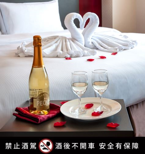▲七夕入住台北凱撒,從客房內的雙人獨享的氣泡酒與愛心天鵝毛巾擺飾開始,為甜蜜夜晚揭開序幕。(圖/台北凱撒大飯店提供)