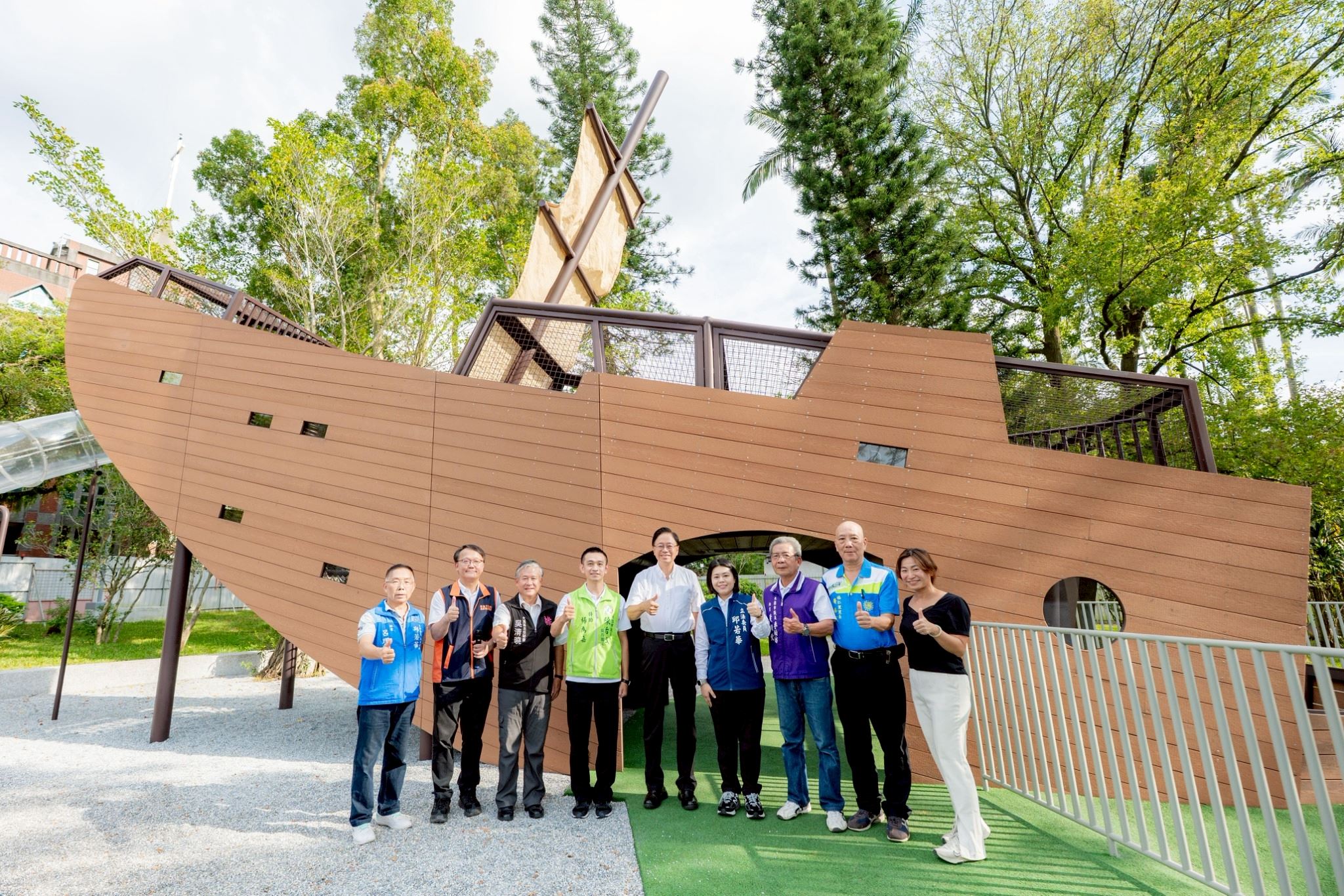 風管處指出,本次新設的遊戲場以大溪歷史「崁津歸帆」為設計概念,打造「大船小船」主題遊戲場,區分低挑戰的「小船區」與高挑戰的「大船區」,讓不同年齡層孩童透過跳躍、平衡與攀爬遊戲,認識大溪河運文化,兼具安全性與教育性。