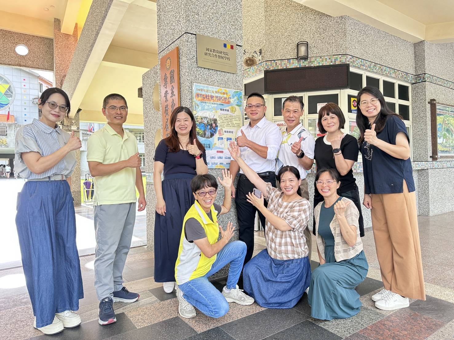 ▲東華附小榮獲國家教育研究院遴選為「研究合作發展學校」,校長張慧娟(後左三)等人相當振奮。(圖/東華附小提供)