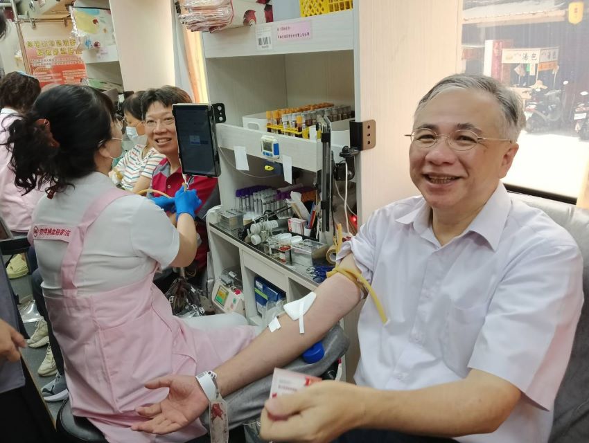 根據台灣血液基金會的統計,全台血庫平均存量僅剩6天,其中A型與O型血更是嚴重短缺,醫療體系血液供應壓力嚴峻。為了號召更多人投入愛心捐血的行列,去年募集熱血千袋的朝陽科技大學EMBA,今年再次發起「朝陽捐血日」活動,結合校友、學生及社區民眾,一連舉辦三場大型捐血活動,接力完成公益行動,攜手實踐SDGs。▲朝陽科大校長鄭道明(右)率先挽袖捐血,展現力挺公益的決心。