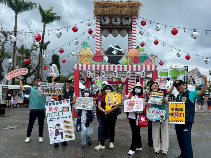 【記者何勁陞/屏東報導】 屏東縣政府警察局與交通旅遊處「防詐宣導團」合作,於10日、11日在屏東縣民公園舉辦第三屆「屏東涼夏祭」活動期間宣導防詐意識,今年活動以「繽紛、異國、歡樂」三大元素為主題,除了多元化的冰品美食盛宴外,還特地邀請插畫角色-「奧樂雞 OLOGY」陪同鄉親一起歡樂過涼夏,現場還有一座8米高的日式高塔為全台唯一、屏東限定的打卡景點,讓民眾一次享受世界各地美食小吃,歡度夏日時光,警察局也高聲疾呼提醒民眾「呷冰也要防詐騙」,面對誘惑訊息只有保持冷靜,才不會被詐騙話術迷惑,才能守護自己的財產不被騙走。