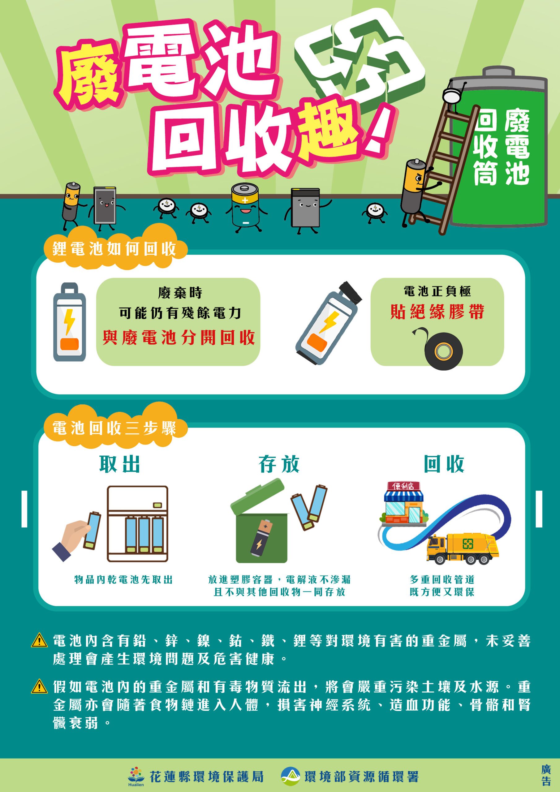▲花蓮縣政府提醒民眾落實廢電池回收三步驟。(圖/花蓮縣環保局提供,下同)