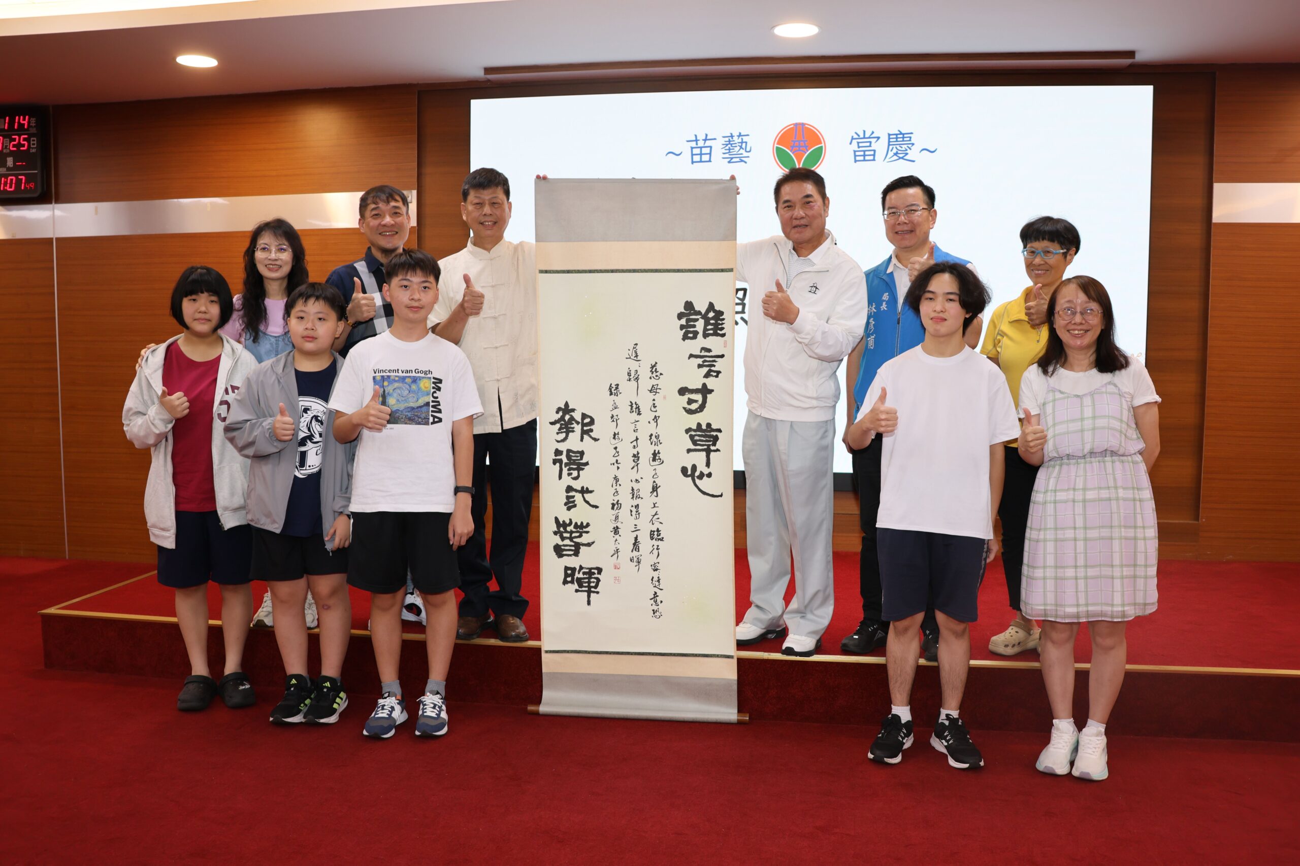 鍾縣長同時鼓勵孩童多練習書法,以培養專注與穩定心性,並希望學校能透過社團推動書法教育;此外,也鼓勵大家多講客家話。苗栗作為客家大縣,縣府將持續配合中央政策,推動客家文化與教育,延續地方文化價值。