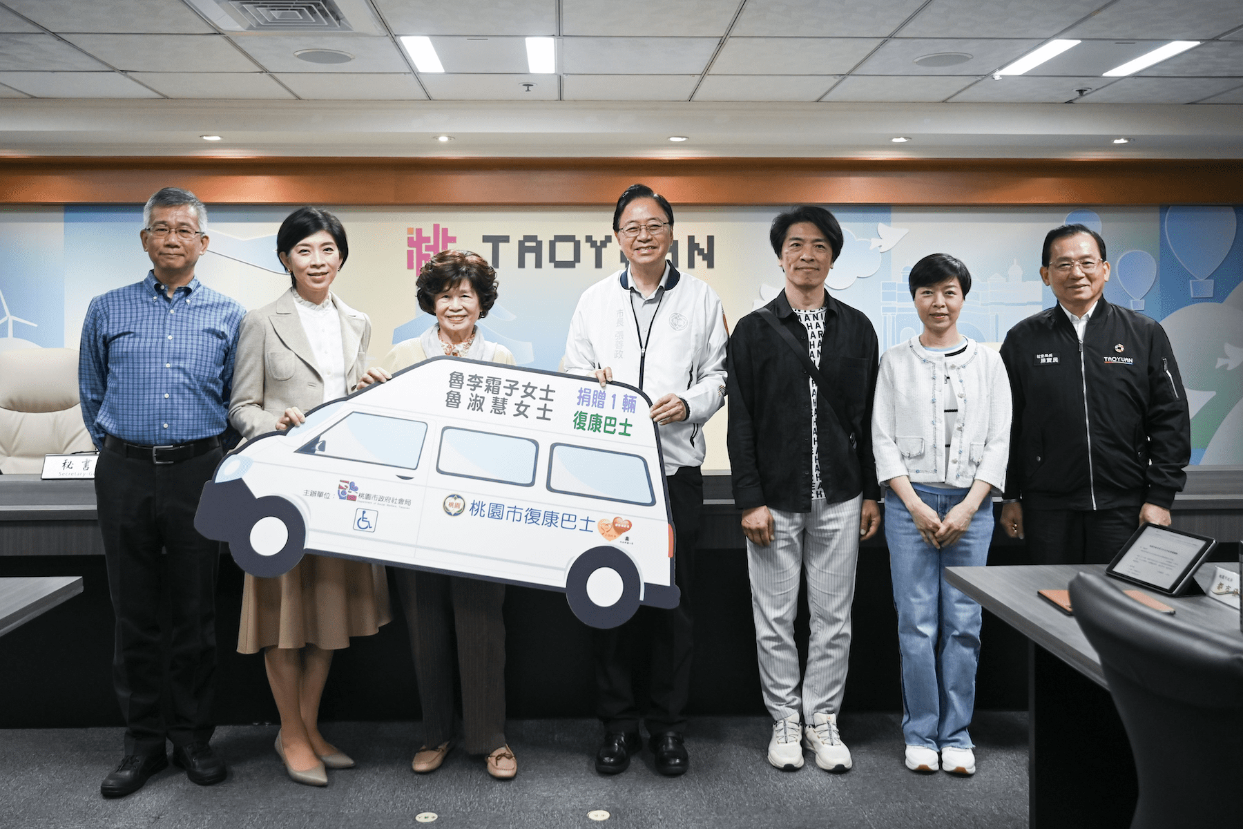 社會局指出,目前桃園市身心障礙者人數已逾9萬人,其中中重度以上者約3萬餘人,復康巴士搭乘需求逐年攀升,113年度總營運趟次達39萬5,355趟次(平均每月3萬2,946趟次)成長率達7.52%。每增加一輛復康巴士,就提升一分對弱勢群體的交通服務能量,市府今(114)年將持續擴大復康巴士實際運營車隊數達200輛,本次捐贈之復康巴士將投入南桃園區營運車隊。