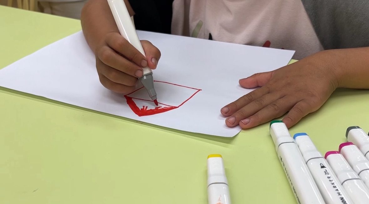 ▲被尋獲的小沂(化名)在兒童關懷中心畫畫。(圖/展望會東區辦事處提供,下同)