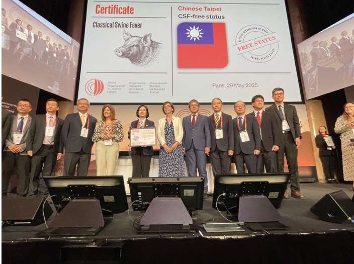 台灣於今年5月在世界動物衛生組織(WOAH)第92屆年會上,獲頒「傳統豬瘟非疫國」證書,正式成為亞洲唯一同時取得豬瘟、口蹄疫、非洲豬瘟三大豬病非疫國認證的國家。