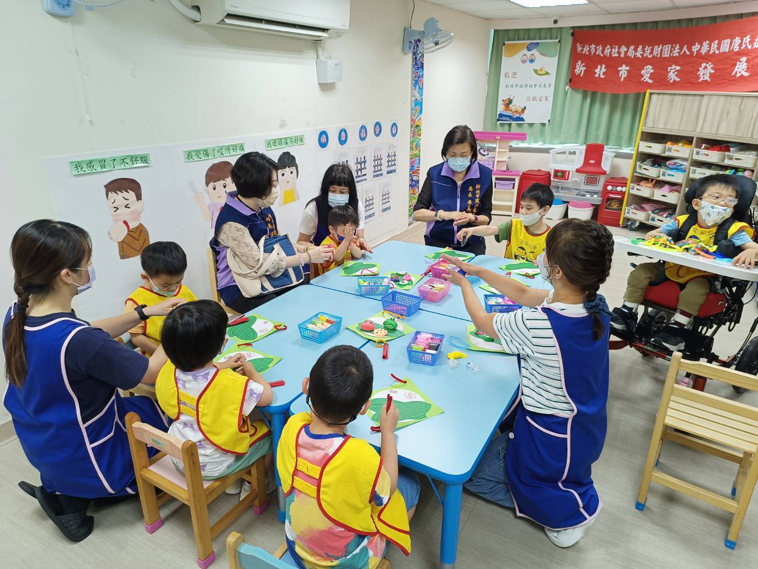 ▲李美珍代表侯友宜到愛家發展中心慰問 並和小朋友一起互動。(圖/新北市社會局 提供)