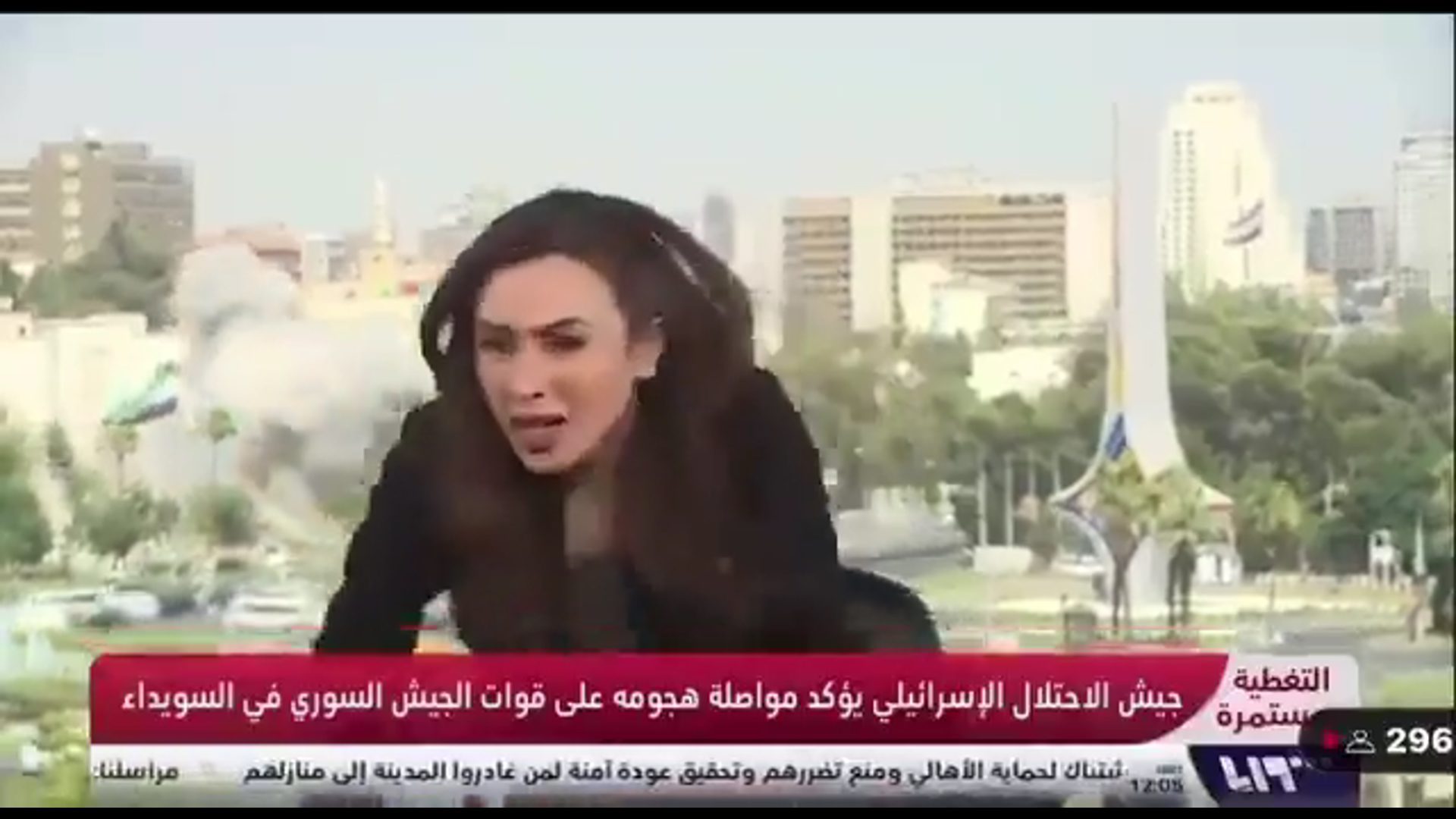 以色列對敘利亞大馬士革的國防部和參謀總部發動空襲,空襲的地點正好是敘利亞電視台的背景畫面,空襲被炸的當下,播報新聞的女主播遭受驚嚇,整個鏡頭全都錄被直播放送出去。