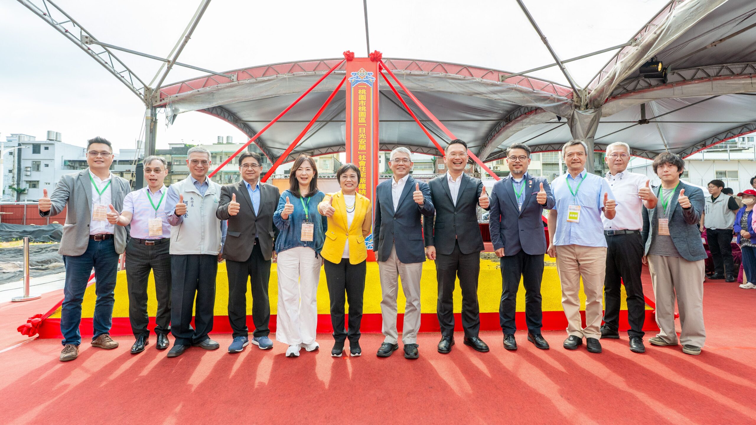桃園市副市長蘇俊賓(17)日下午前往桃園區,出席「日光安居」社會住宅新建統包工程動土典禮時表示,中央與地方通力合作,目標一致,就是要讓市民能在桃園安居樂業。社會住宅不僅提供居住空間,更是結合社福資源與社區營造的重要場域,進一步創造附加價值。「日光安居」除了規劃居住單元,也將設置托嬰中心,透過多元設施打造全齡友善的居住環境。