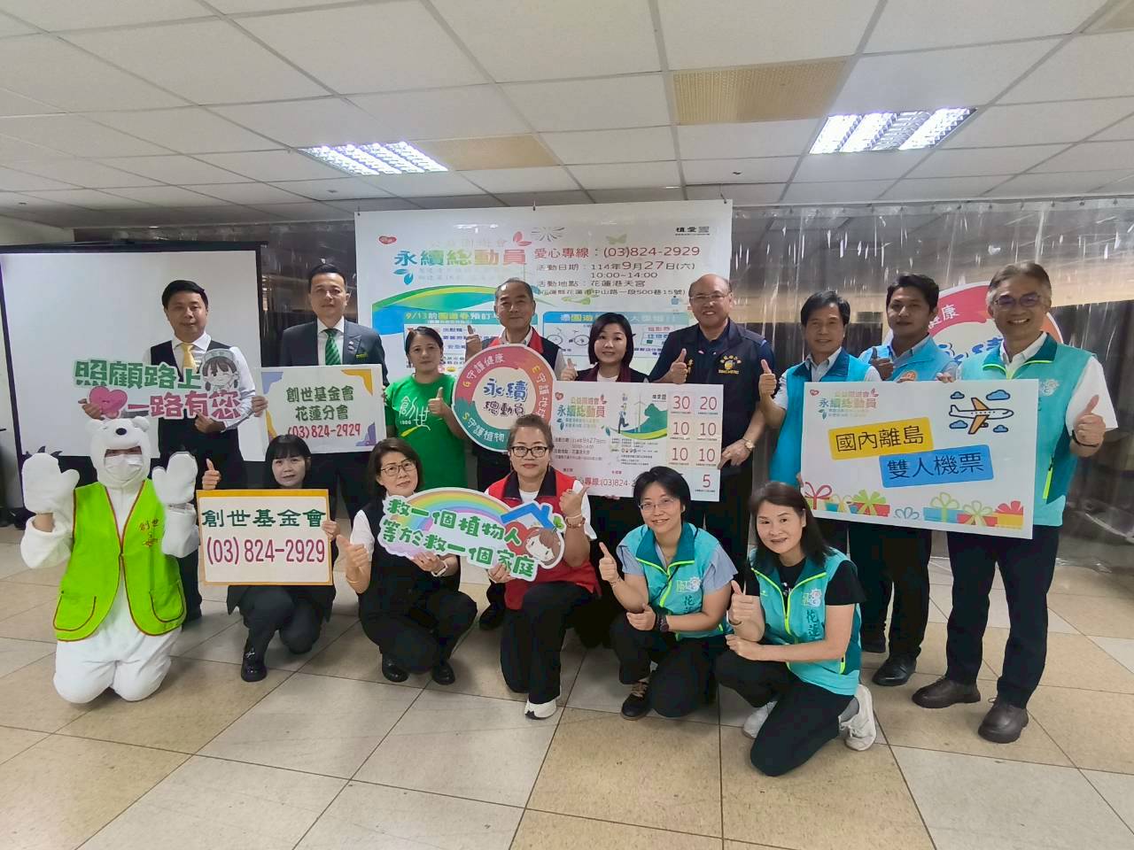 創世基金會為籌建「清寒植物人安養院-花蓮分院」,紓緩植物人家庭的長期照顧重擔,將於9月27日在花蓮港天宮舉辦「永續總動員」公益園遊會,今(2)日記者會中,創世尖兵齊跳樂活操,期盼讓更多人加入公益與環保行列。
